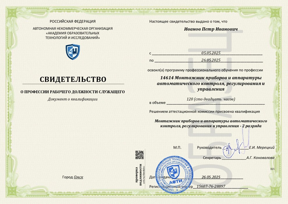 - Приказ Минпросвещения РФ от 14.07.2023 №534. Код профессии: 14614 - Монтажник приборов и аппаратуры автоматического контроля, регулирования и управления
