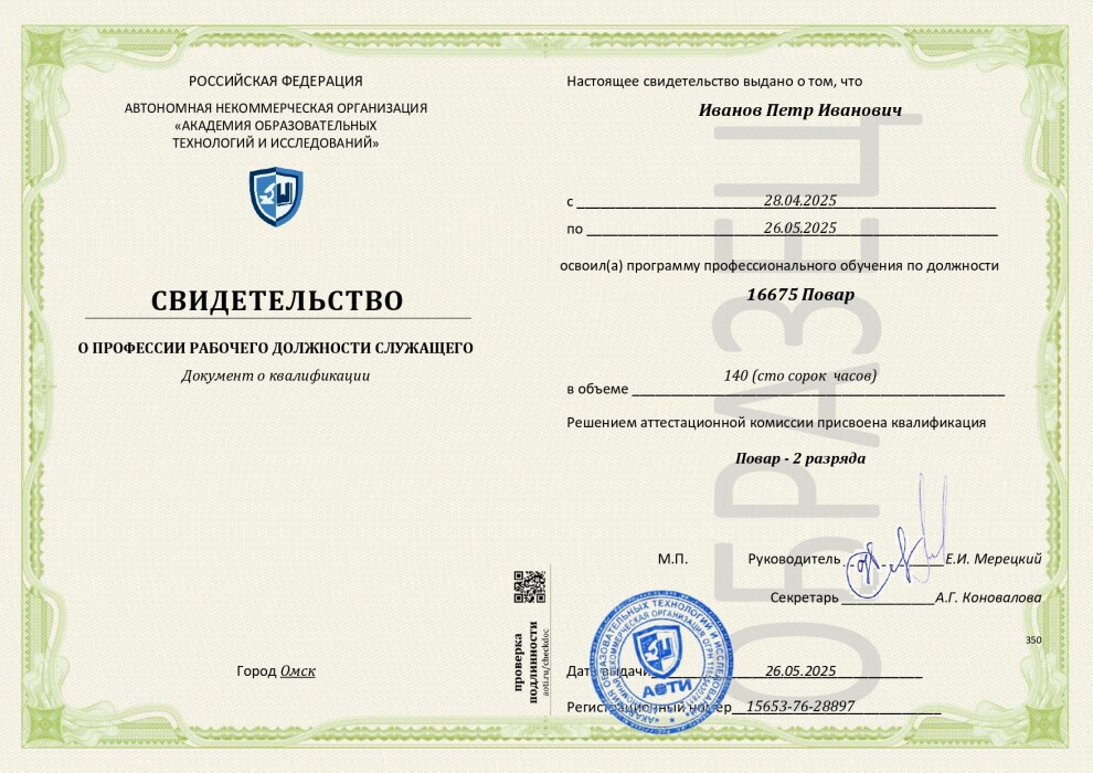 - Приказ Минпросвещения РФ от 14.07.2023 №534. Код профессии: 16675 - Повар