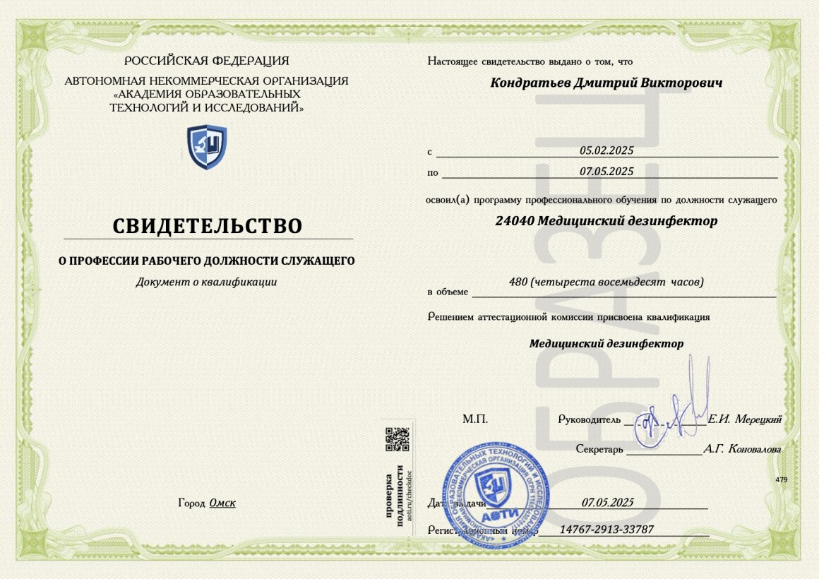 - свидетельство о профессии рабочего, должности служащего, и удостоверение