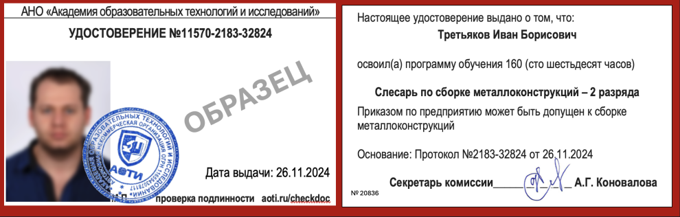 - Профессиональный стандарт 40.029. "Слесарь по сборке металлоконструкций", утвержденный Приказом Минтруда №237н от 14.04.2025
