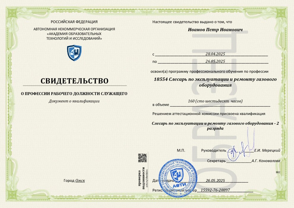 18554 - Слесарь по эксплуатации и ремонту газового оборудования