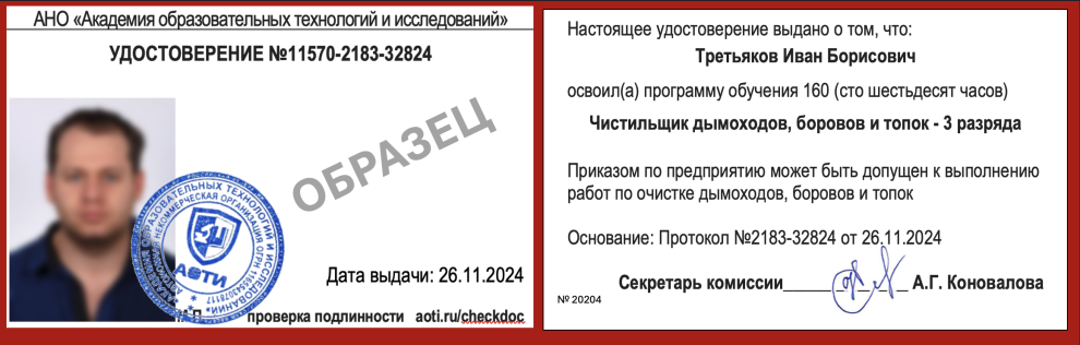 - Приказ Минпросвещения РФ от 14.07.2023 №534. Код профессии: 19561 - Чистильщик дымоходов, боровов и топок