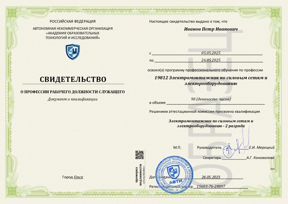 19812 - Электромонтажник по силовым сетям и электрооборудованию