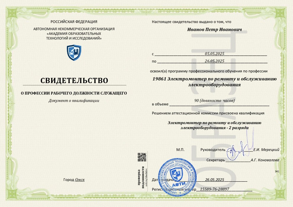 - Приказ Минпросвещения РФ от 14.07.2023 №534. Код профессии: 19861 - Электромонтер по ремонту и обслуживанию электрооборудования