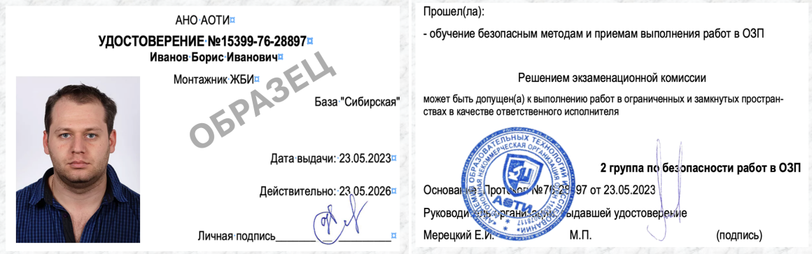 Удостоверение о допуске к работам в ОЗП