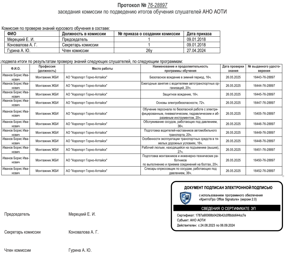 - протокол проверки знаний, удостоверение