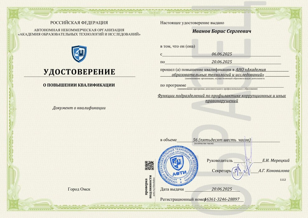 Типовые программы повышения квалификации в области противодействия коррупции утверждены приказом Минтруда России N 331н и действуют с 1.03.2023. Соответствующие учебные программы АНО АОТИ разработаны на их основе и учитывают актуальные требования законодательства и профстандарта.