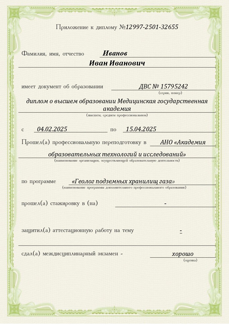 - Профессиональный стандарт 19.009. "Специалист – геолог подземных хранилищ газа", утвержденный Приказом Минтруда №1184н от 26.12.2014.