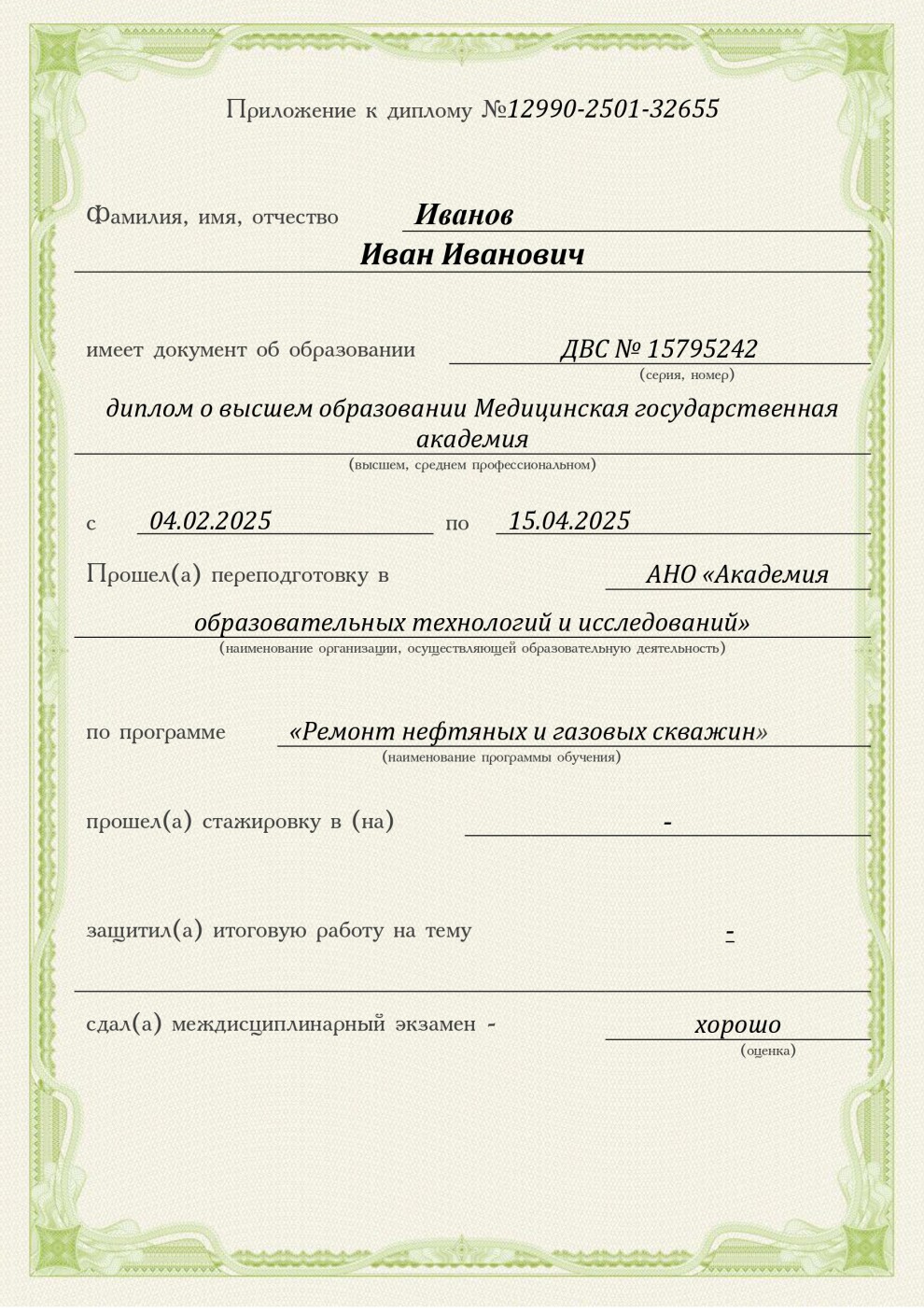 - диплом о профессиональной переподготовке, премиальная табличка*