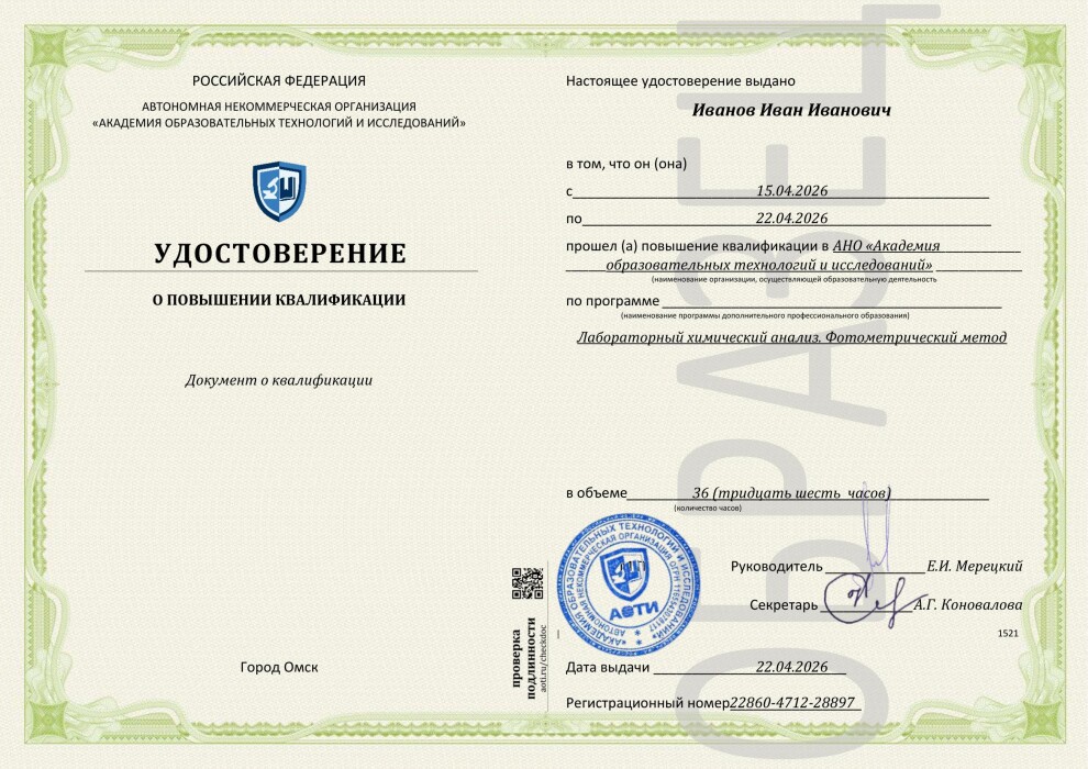 Лабораторный химический анализ. Фотометрический метод