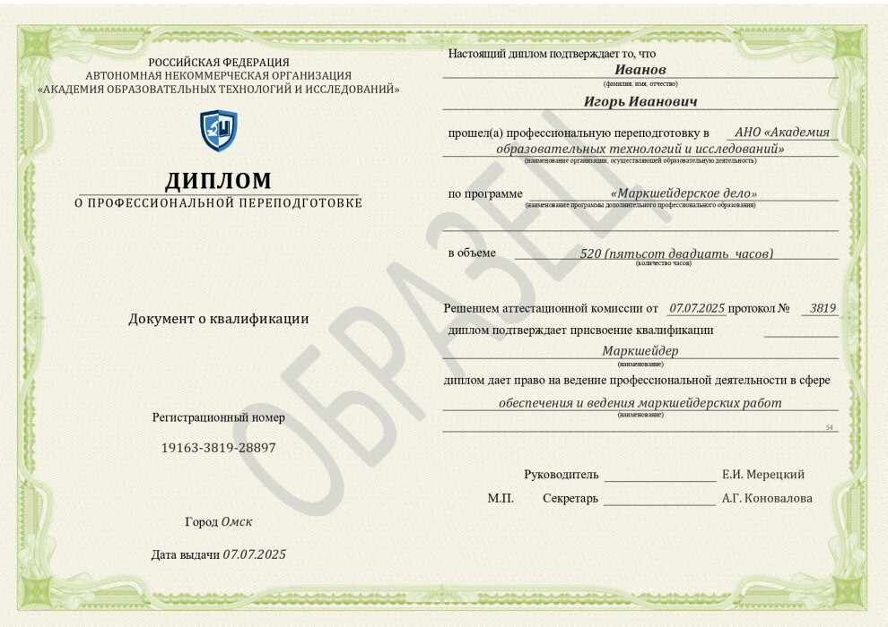 - диплом о профессиональной переподготовке, премиальная табличка*