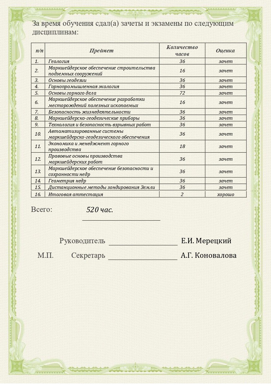 - Маркшейдерские работы, Обучение для лицензирования
