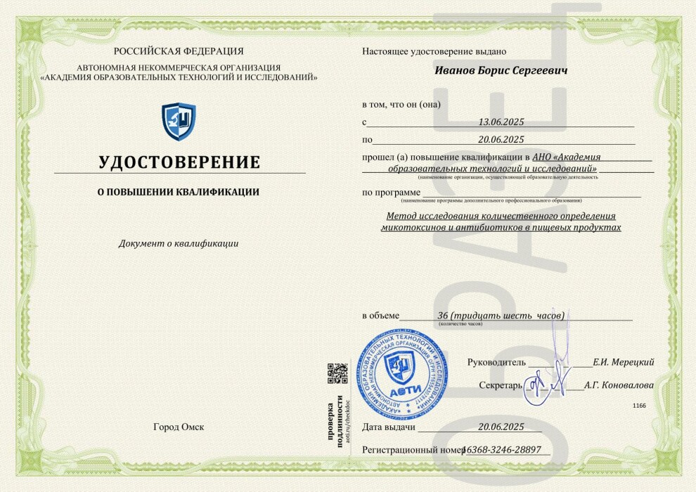 Метод исследования количественного определения микотоксинов и антибиотиков в пищевых продуктах