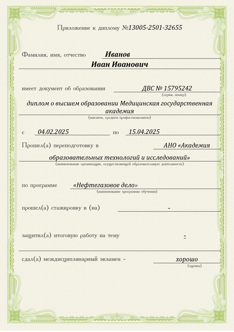 - диплом о профессиональной переподготовке, премиальная табличка*