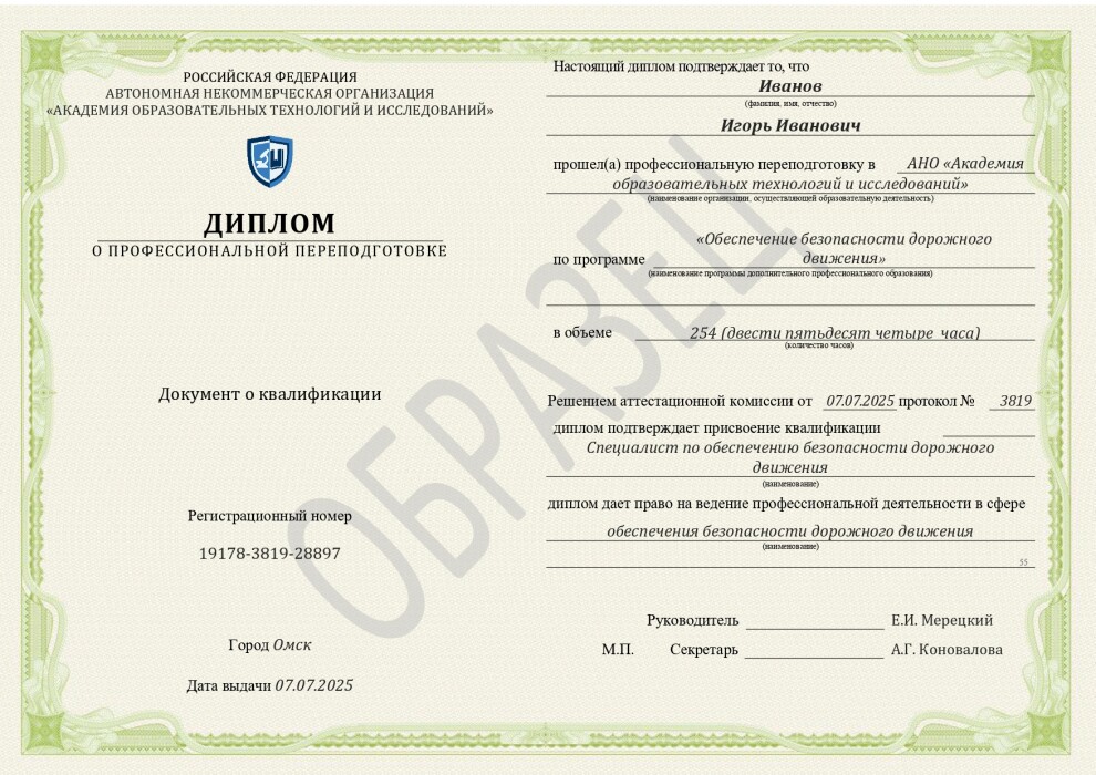Согласно требований Приказа Минтранса РФ от 31.07.2020 №282 «Об утверждении профессиональных и квалификационных требований, предъявляемых при осуществлении перевозок к работникам юридических лиц и индивидуальных предпринимателей, указанных в абзаце первом пункта 2 статьи 20 Федерального закона «О безопасности дорожного движения» выделяются следующие должности, имеющие образование не ниже уровня среднего профессионального, по специальности или направлению подготовки, не входящим в укрупненную группу 23.00.00 «Техника и технологии наземного транспорта» для которых требуется проведение профессиональной переподготовки с присвоением соответствующих квалификаций: