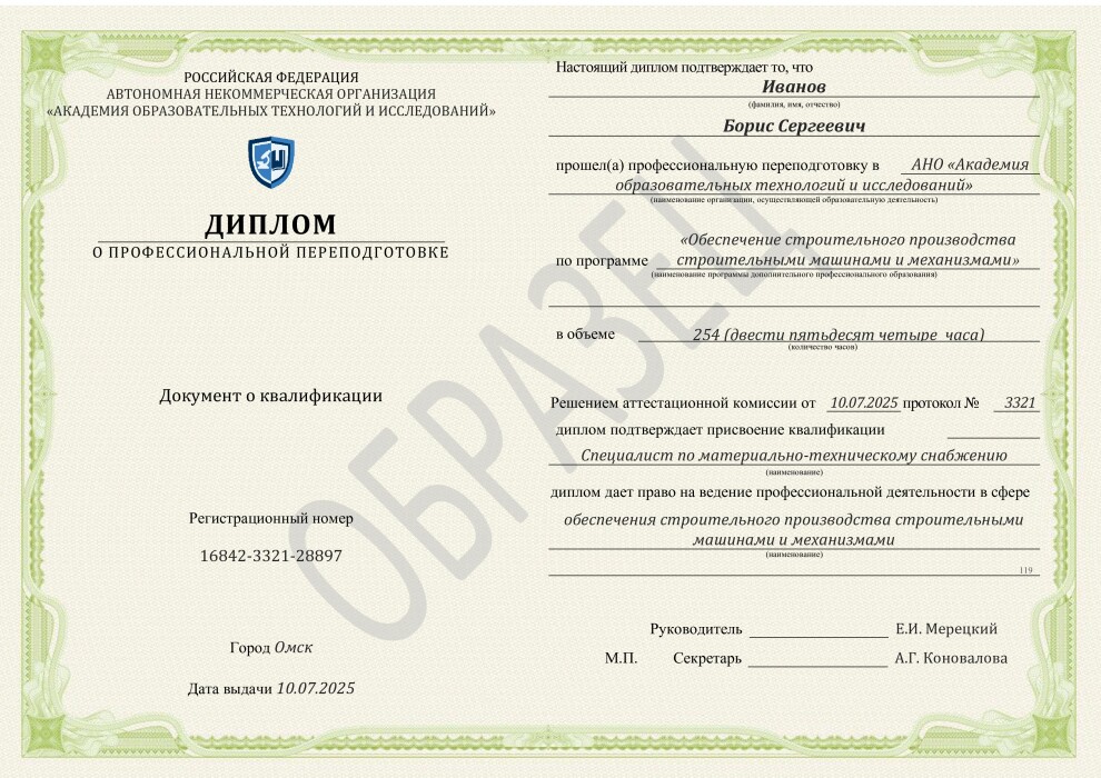 - Профессиональный стандарт 16.031. "Специалист в области обеспечения строительного производства строительными машинами и механизмами", утвержденный Приказом Минтруда №399н от 07.07.2022.