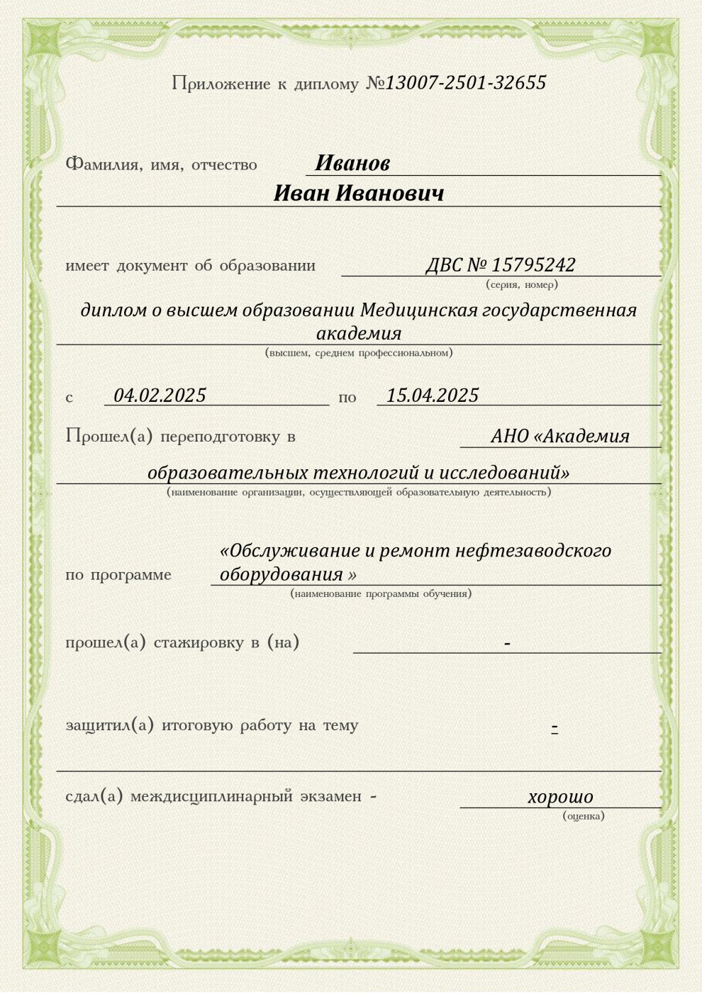 - диплом о профессиональной переподготовке, премиальная табличка*