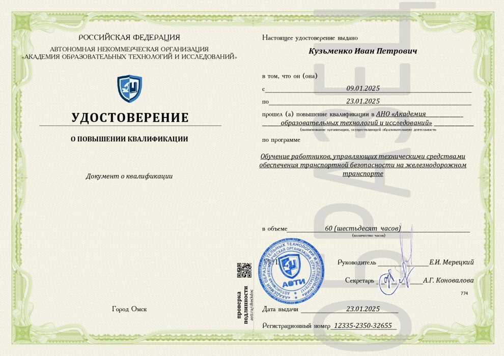 Обучение работников, управляющих техническими средствами обеспечения транспортной безопасности на железнодорожном транспорте