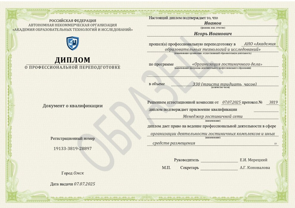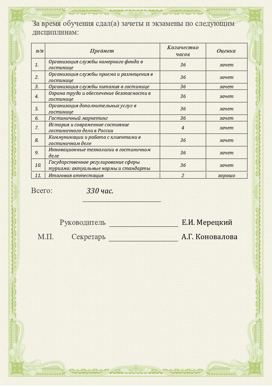 Возможность успешно вести гостиничный бизнес в конкурентной среде и проходить обязательную классификацию средств размещения с присвоением желаемой категории. Кроме того, на основании пп. 73-75 Приложения №3 к Положению о классификации средств размещения (Постановление Правительства РФ от 27.12.2024 № 1951) обучение персонала гостиниц также дает возможность получить дополнительные баллы в процессе экспертной оценки средства размещения.