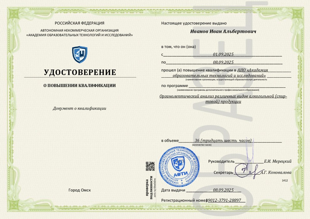 Органолептический анализ различных видов алкогольной (спиртовой) продукции