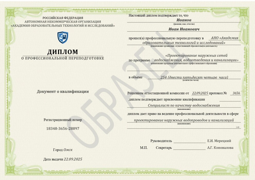 - Профессиональный стандарт 10.025. "Специалист в области проектирования наружных сетей водоснабжения, водоотведения и канализации", утвержденный Приказом Минтруда №216н от 18.04.2022.