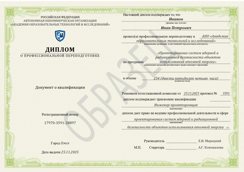 - Профессиональный стандарт 24.104. "Инженер-проектировщик систем ядерной и радиационной безопасности объектов использования атомной энергии", утвержденный Приказом Минтруда №514н от 24.08.2020