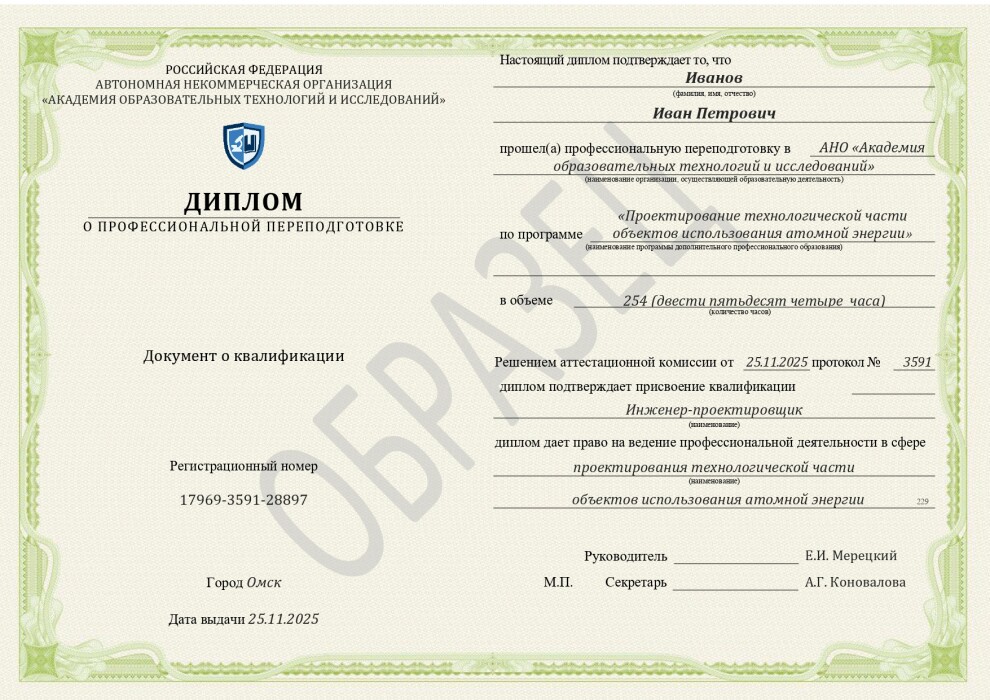 Проектирование технологической части объектов использования атомной энергии