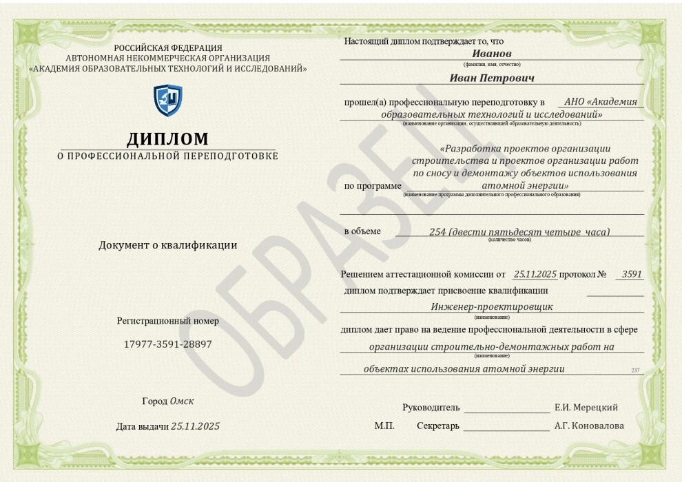 - Профессиональный стандарт 24.120. "Специалист по разработке проектов организации строительства и проектов организации работ по сносу и демонтажу объектов использования атомной энергии", утвержденный Приказом Минтруда №702н от 11.10.2021