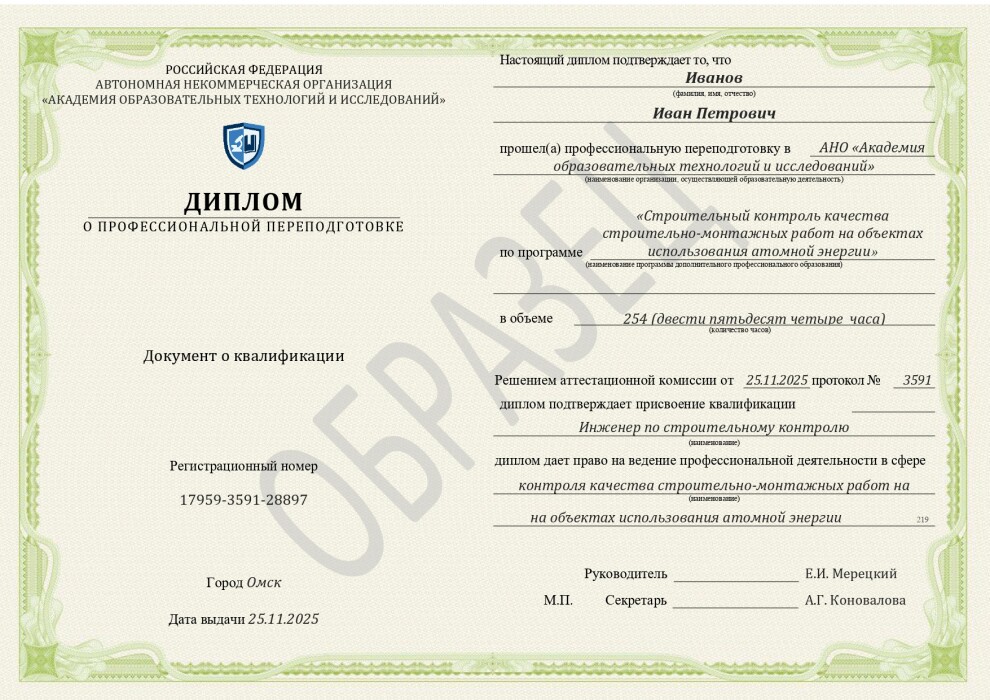 Строительный контроль качества строительно-монтажных работ на объектах использования атомной энергии