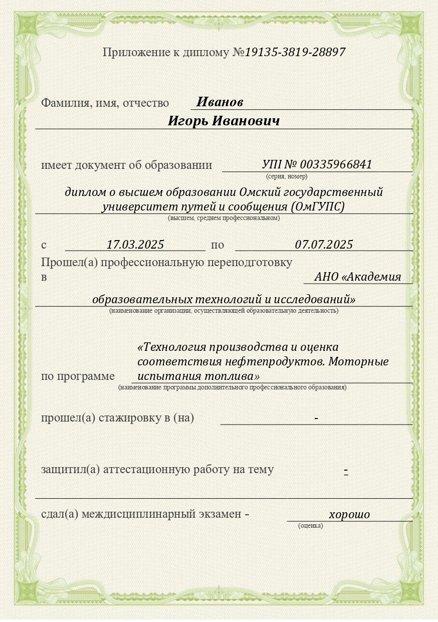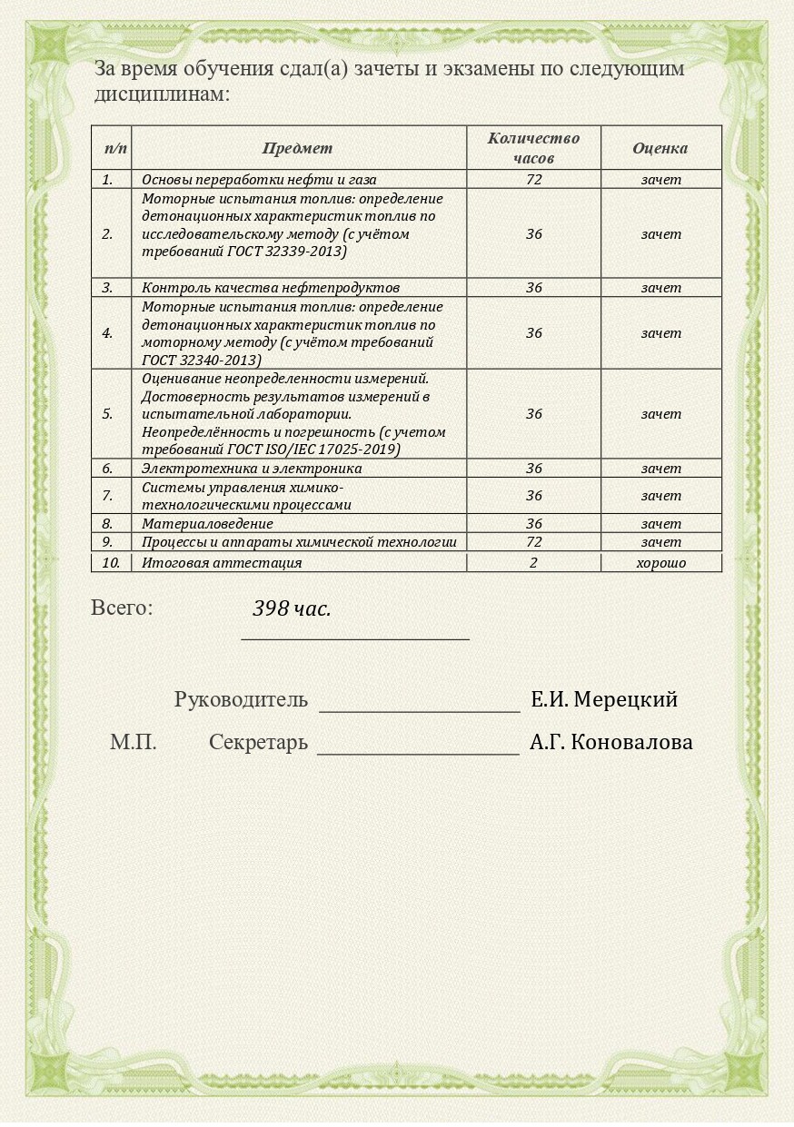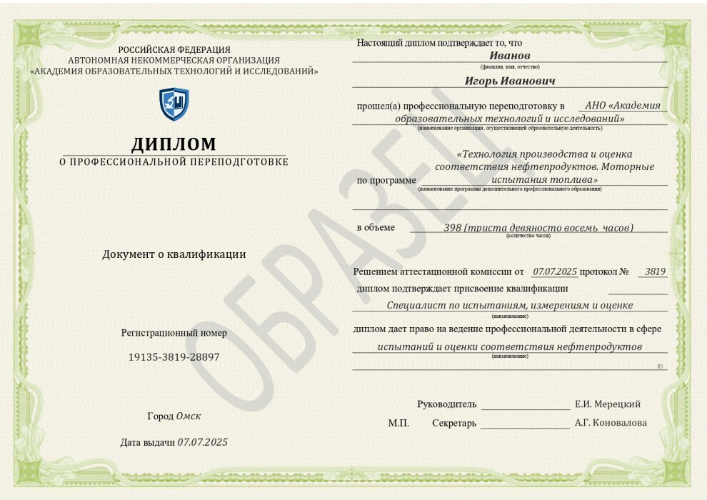 Технология производства и оценка соответствия нефтепродуктов. Моторные испытания топлива