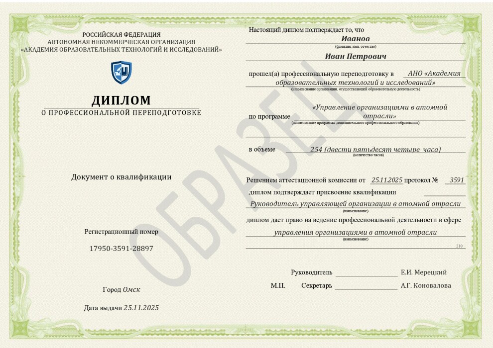 - Профессиональный стандарт 24.035. "Руководитель управляющей организации в атомной отрасли", утвержденный Приказом Минтруда №516н от 27.07.2015
