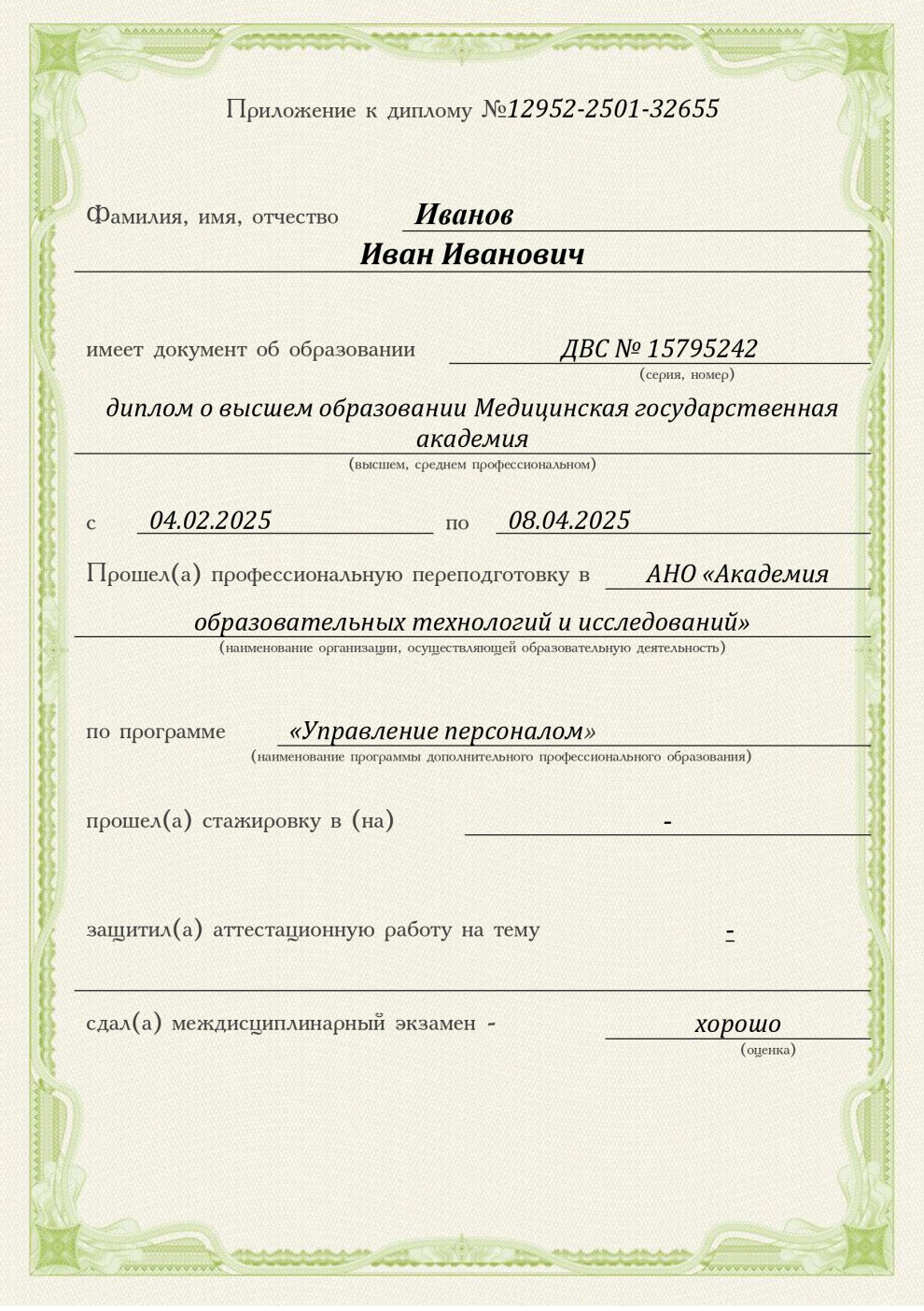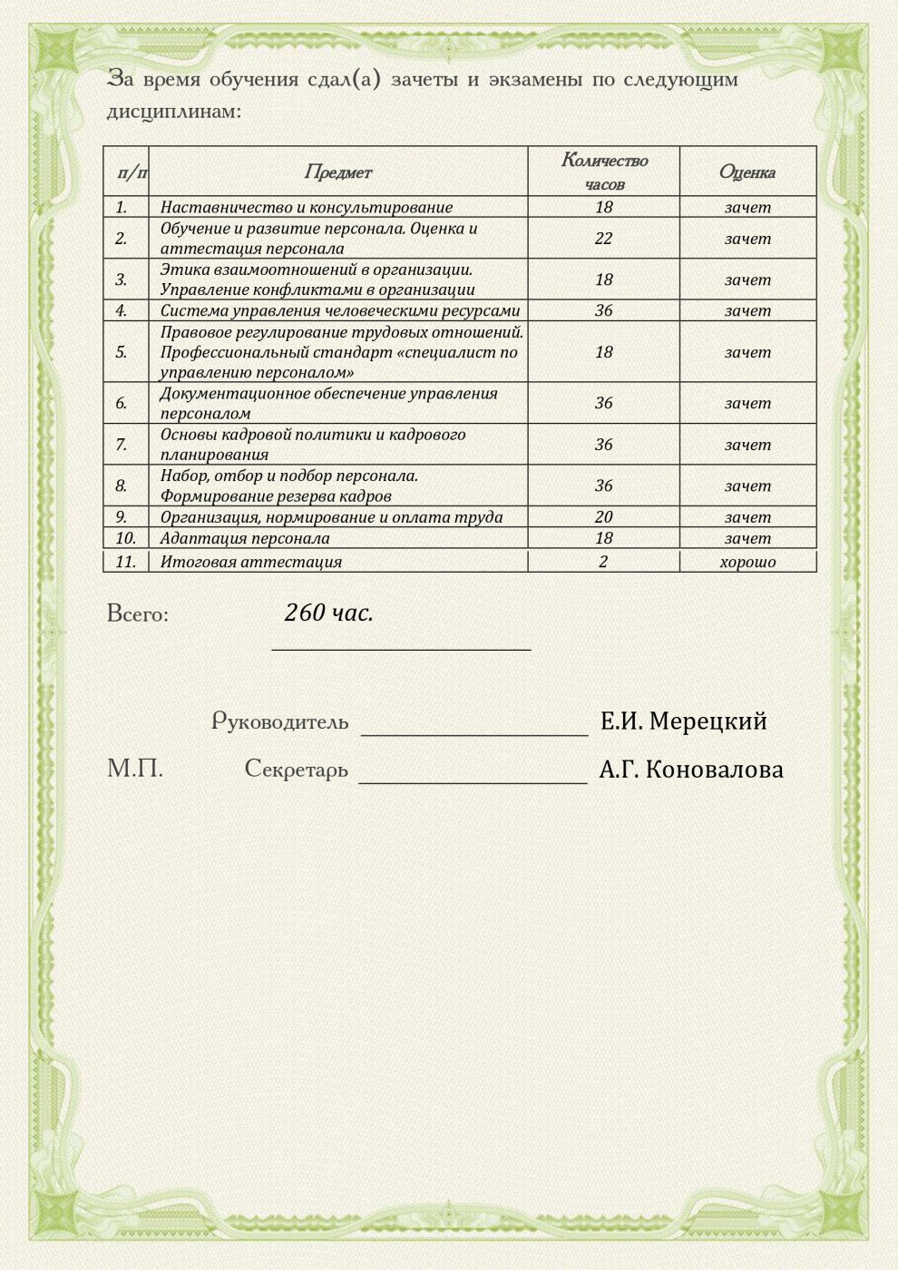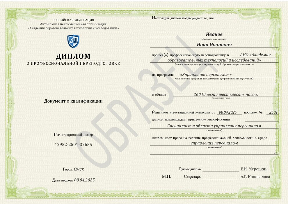 - лиц, имеющих высшее или среднее профессиональное образование не по направлению "Управление персоналом", но желающих работать в кадровой сфере